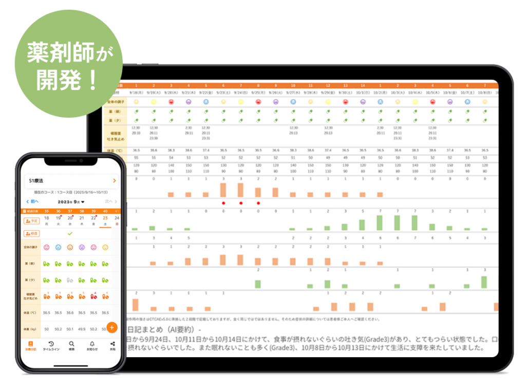 がん治療における副作用や服薬状況の変化は、診察室や薬局のカウンターでは見えない「日々の暮らし」の中にこそ存在しています。しかし、多くの患者さんが「うまく伝えられないまま我慢し、症状が重篤化してしまう」という課題が、医療現場には常にありました。