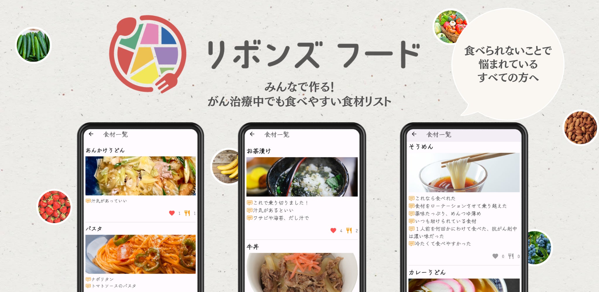 2024年8月6日、がん治療中でも食べやすい食材リストを投稿して投票できるアプリ「リボンズフード」をリリースしました。